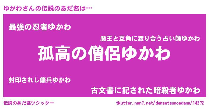 | ヒーロー風カッコイイあだ名 | 『暗黒騎士ユカ』『ウルトラゆかわマン』 |