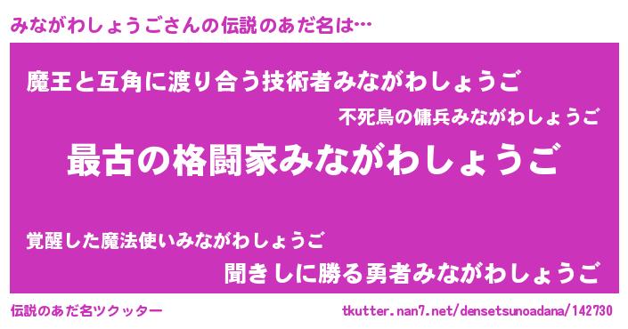 | 意味不明あだ名 | 『自称みながわしょうご』 |