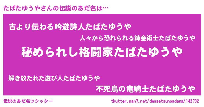 | ファンタジー風あだ名 | 『エターナルタバタユウヤー』 |