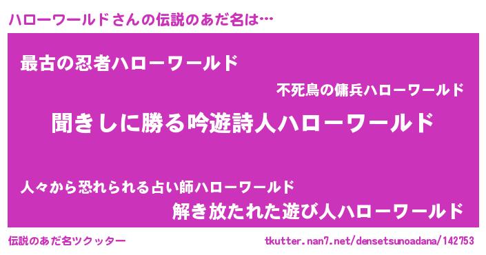 | 女子向けラノベタイトル風あだ名 | 『ハローワールドが死なない童話 林檎のハローワールドの診療簿』 |