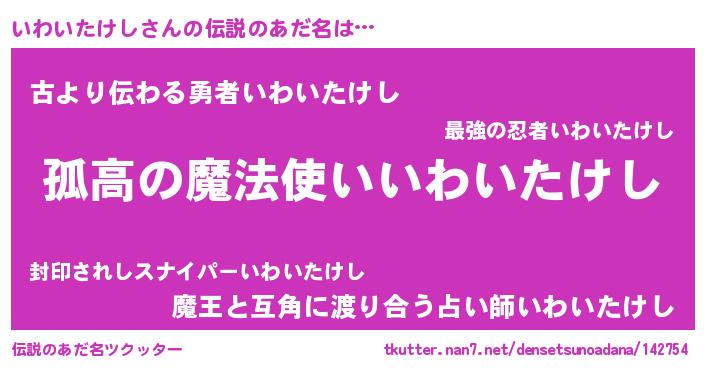 | 胡散臭い通販商品みたいなあだ名 | 『信頼と実績のサプリメント…その名も「いわいたけし」』 |