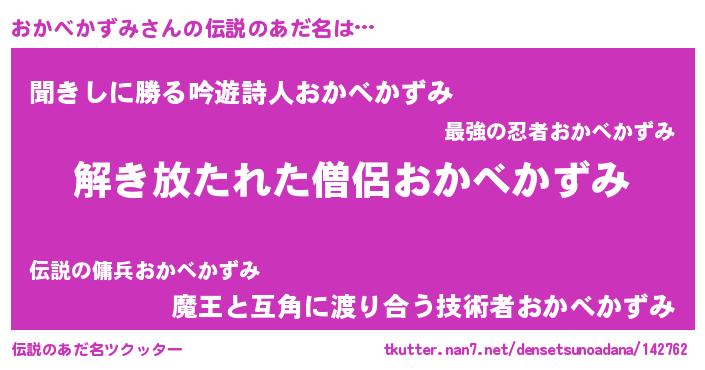 | 男性向けラノベタイトル風あだ名 | 『ダンジョンにおかべかずみを求めるのは間違っているだろうか』 |