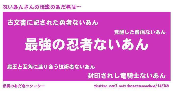 | 男性向けラノベタイトル風あだ名 | 『Re:ないあんから始める異世界生活』 |