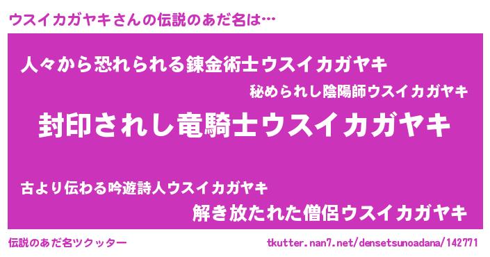 | ポケモン風あだ名 | 『ウスチュウ』『ウックウザ』 |