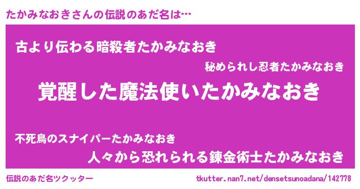 | 男性向けラノベタイトル風あだ名 | 『たかみなおきの嫁は女の子じゃないと思った?』 |