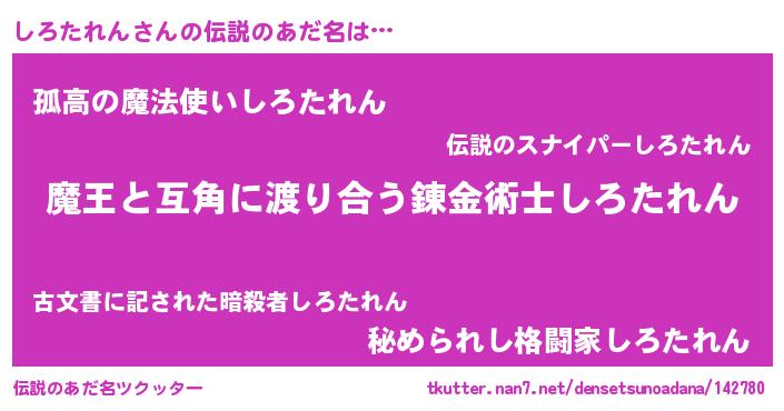 | ヒーロー風カッコイイあだ名 | 『愛の使者しろたれん』『魔戒騎士シロ』 |