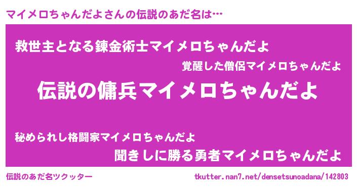 | ヒーロー風カッコイイあだ名 | 『スーパーマイメロチャンダヨ』 |