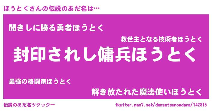 | ヒーロー風カッコイイあだ名 | 『スーパーホウトク』『仮面ホウダー』 |