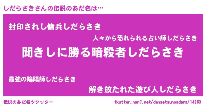 | 女子向けラノベタイトル風あだ名 | 『しだらさきなんてお断りですっ。』 |