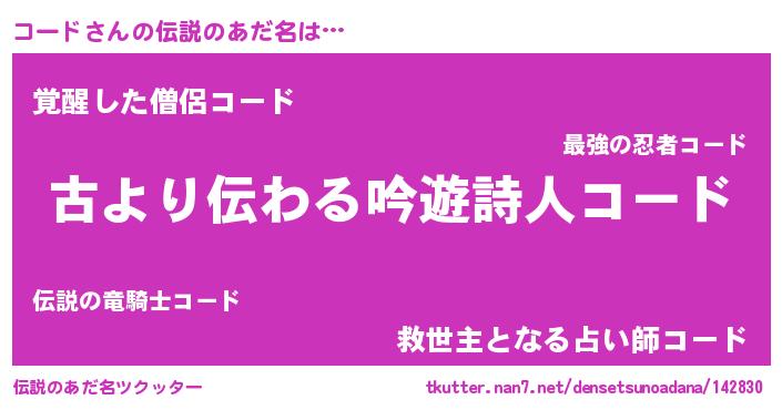 | 意味不明あだ名 | 『永久保存コード』『自称コード』 |