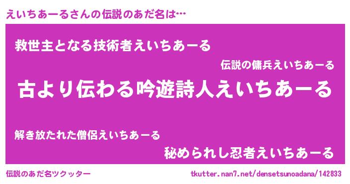 | 意味不明あだ名 | 『住所不定無職えいちあーる(13歳)』 |