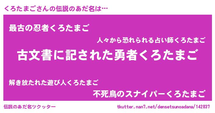 | 意味不明あだ名 | 『永久保存くろたまご』 |