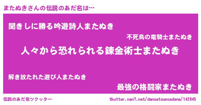 | ヒーロー風カッコイイあだ名 | 『友情の使者またぬき』『ネオマタヌキ』 |