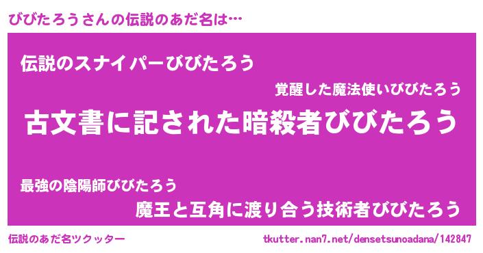 | 意味不明あだ名 | 『永久保存びびたろう』『自称びびたろう』 |