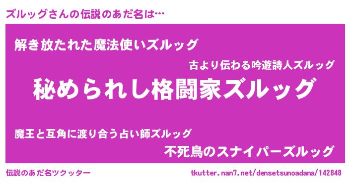 | ファンタジー風あだ名 | 『エターナルズルッグー』『ズルフェル』 |