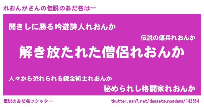 | 意味不明あだ名 | 『自称れおんか』『永久保存れおんか』 |