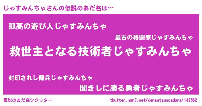 | 意味不明あだ名 | 『自称じゃすみんちゃ』 |