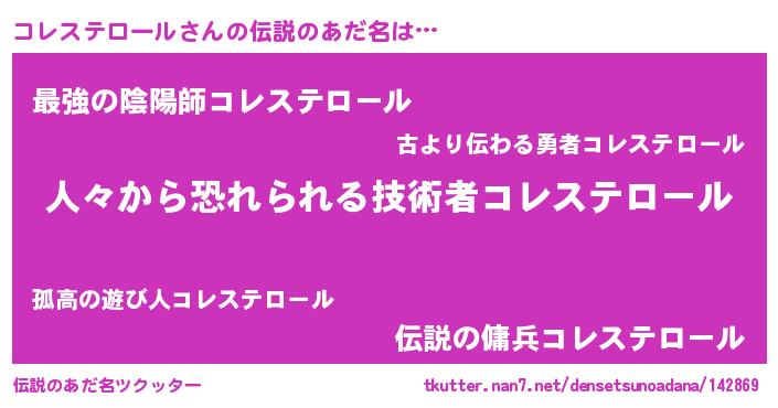 | ヒーロー風カッコイイあだ名 | 『友情の使者コレステロール』 |