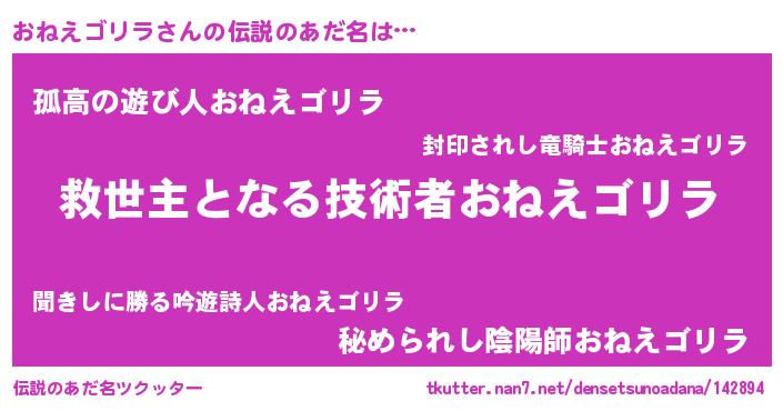 | ヒーロー風カッコイイあだ名 | 『慈愛の使者おねえゴリラ』 |