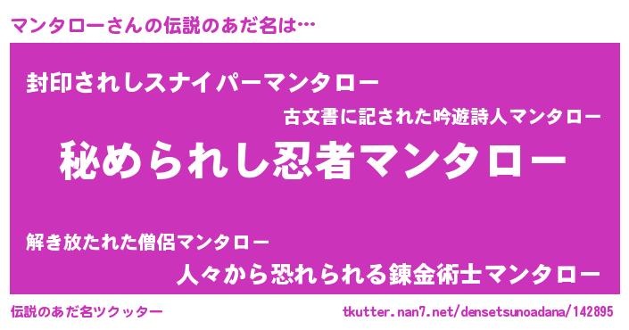 | 意味不明あだ名 | 『マンタローフォーエバー』 |