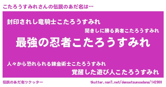 | 意味不明あだ名 | 『住所不定無職こたろうすみれ(50歳)』 |