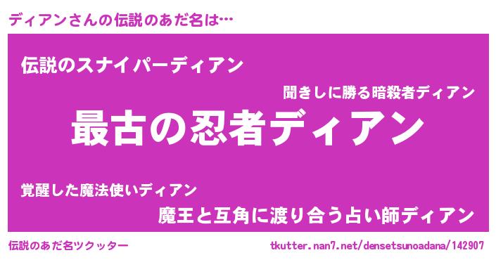 | ファンタジー風あだ名 | 『エターナルディアンー』『ディフェル』 |