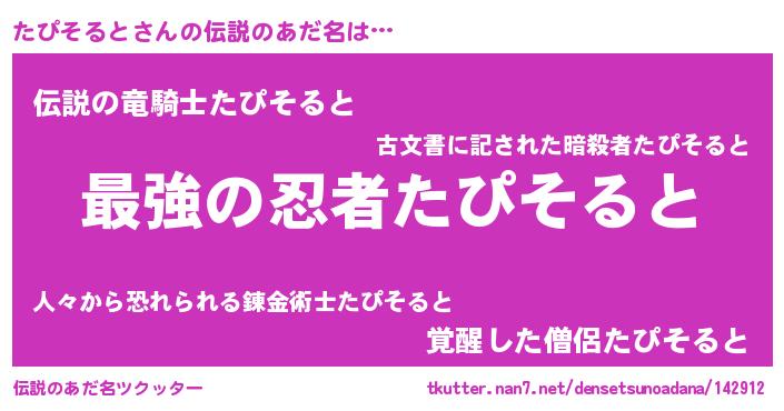 | 意味不明あだ名 | 『住所不定無職たぴそると(43歳)』 |