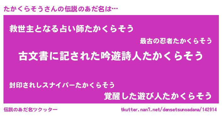 | 意味不明あだ名 | 『永久保存たかくらそう』 |