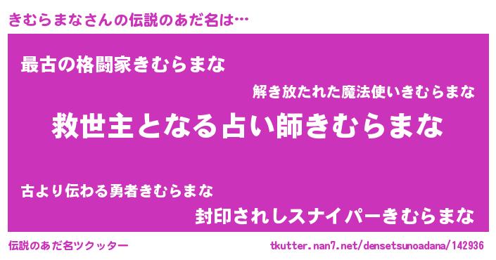| 男性向けラノベタイトル風あだ名 | 『ノーゲーム・ノーキムラマナ』 |