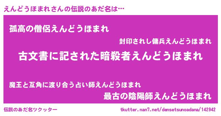 | 意味不明あだ名 | 『住所不定無職えんどうほまれ(14歳)』 |