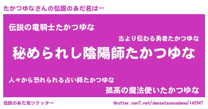 | ヒーロー風カッコイイあだ名 | 『仮面タカダー』『超時空戦士タカツユナ』 |