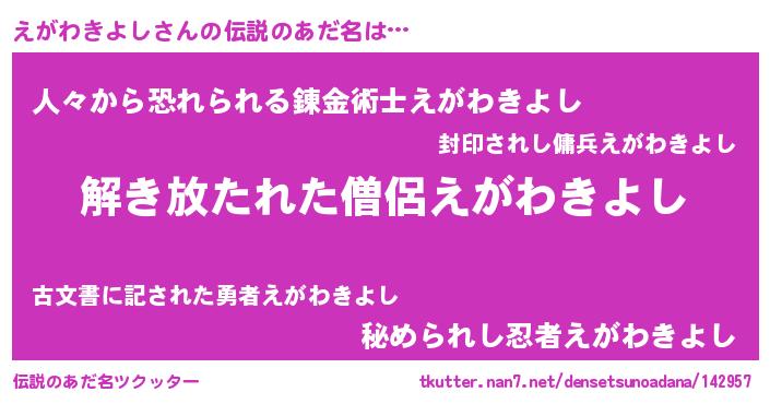| 男性向けラノベタイトル風あだ名 | 『ダンジョンにえがわきよしを求めるのは間違っているだろうか』 |