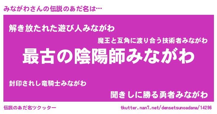 | 意味不明あだ名 | 『みながわフォーエバー』『自称みながわ』 |