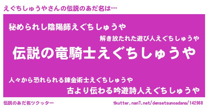| ヒーロー風カッコイイあだ名 | 『ウルトラ戦士エグチシュウヤ』 |