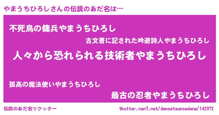 | 男性向けラノベタイトル風あだ名 | 『おまえをオタクにしてやるから、俺をやまうちひろしにしてくれ! 』 |