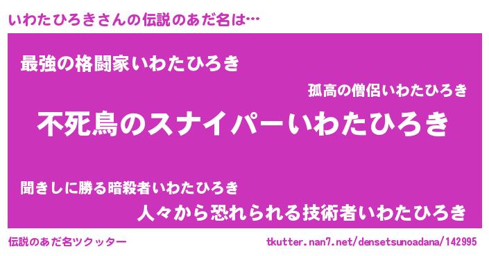 | 男性向けラノベタイトル風あだ名 | 『いわたひろきの憂鬱』 |