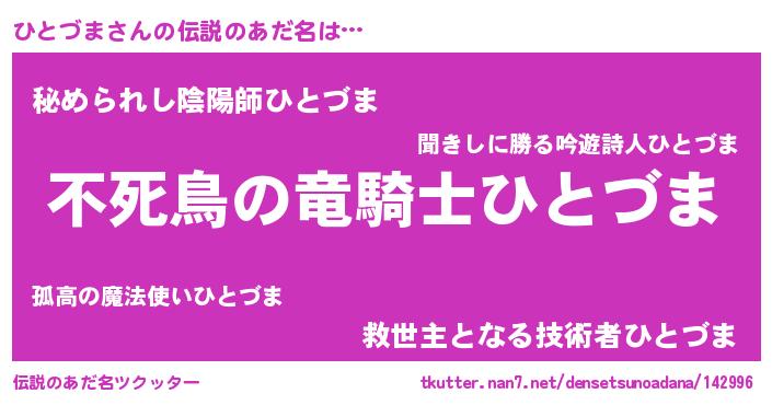 | ヒーロー風カッコイイあだ名 | 『ウルトラ戦士ヒトヅマ』『仮面ヒトダー』 |