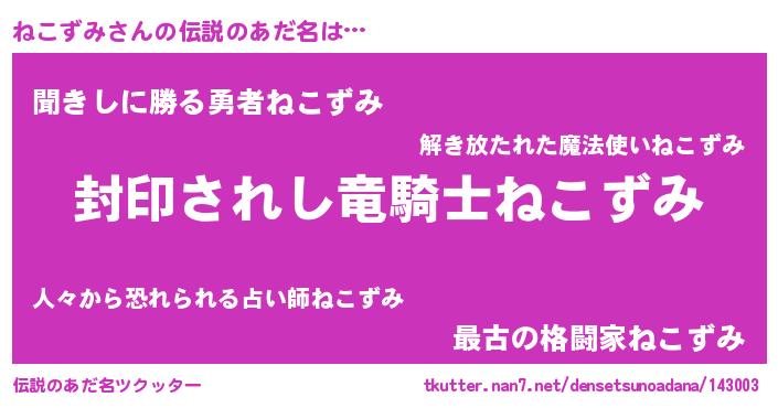 | ヘコむあだ名 | 『ねこにー』『ねこずみ(震え声)』 |
