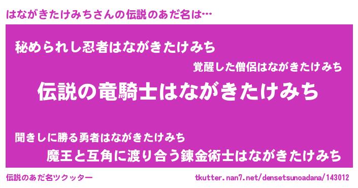 | 意味不明あだ名 | 『自称はながきたけみち』 |