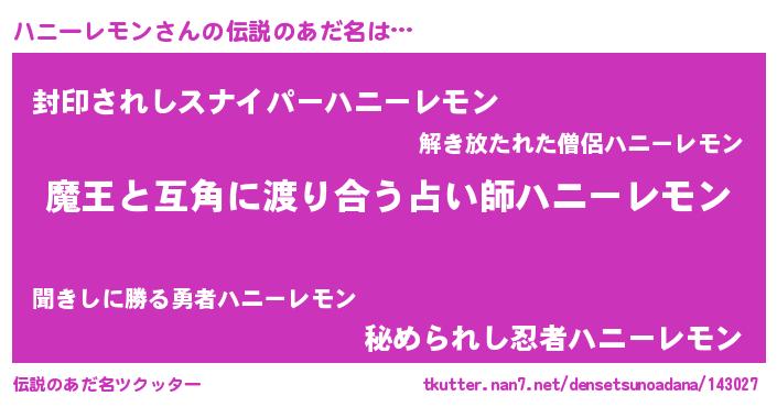 | ヒーロー風カッコイイあだ名 | 『愛の使者ハニーレモン』『仮面ハニダー』 |