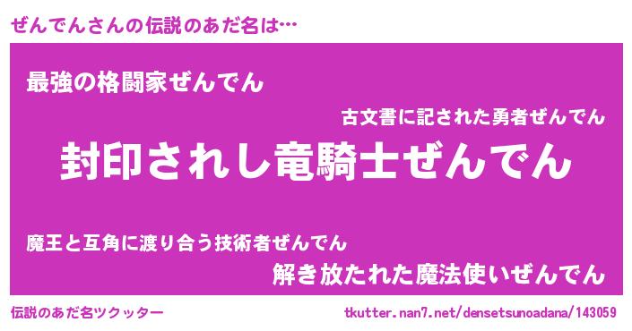 | 意味不明あだ名 | 『ペロリンぜんでん』『自称ぜんでん』 |