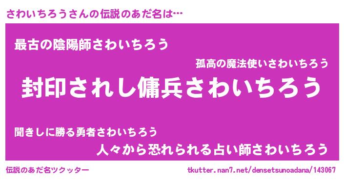 | 女子向けラノベタイトル風あだ名 | 『誰かこのさわいちろうを説明してください! ~契約から始まるウェディング~』 |