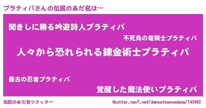 | ヒーロー風カッコイイあだ名 | 『友情の使者プラティバ』『銀牙騎士プラ』 |