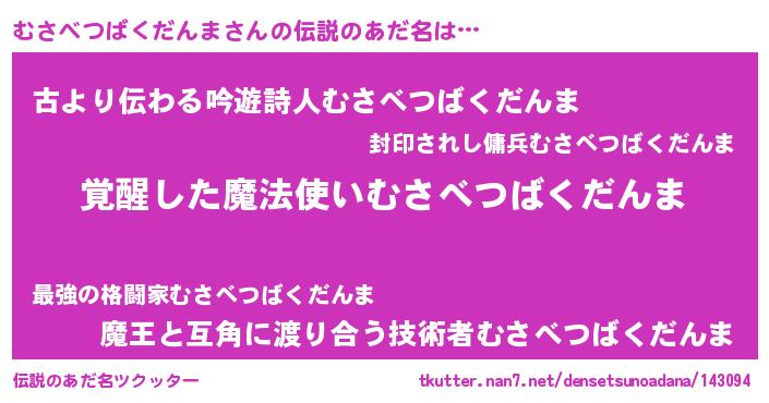 | 男性向けラノベタイトル風あだ名 | 『むさべつばくだんまの嫁は女の子じゃないと思った?』 |