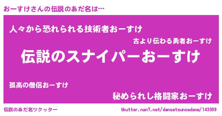 | 胡散臭い通販商品みたいなあだ名 | 『必ず成功する霊験あらたかなお札…その名も「おーすけ」』 |
