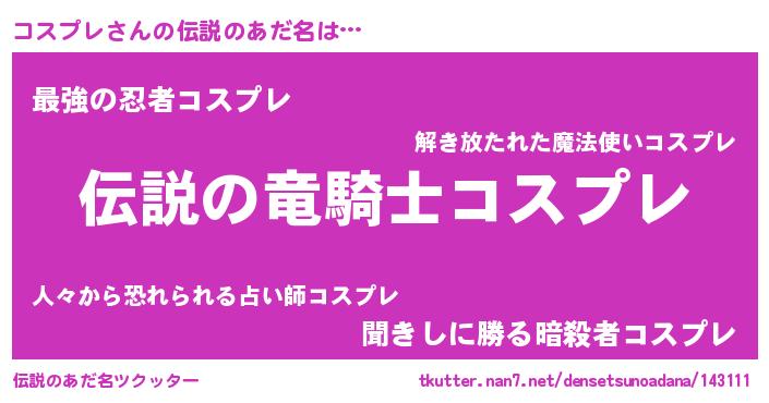 | 恥ずかしいあだ名 | 『プリティーコスプレ』『コスっちょ』 |