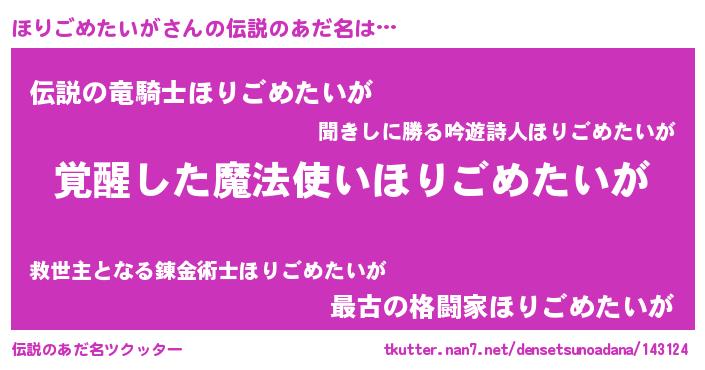 | 男性向けラノベタイトル風あだ名 | 『ほりごめたいがに滅ぼされるだけの簡単なお仕事です』 |