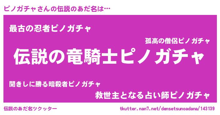 | ファンタジー風あだ名 | 『ピノフェル』『エターナルピノガチャー』 |