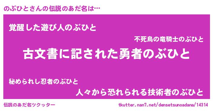 | ヒーロー風カッコイイあだ名 | 『ネオノブヒト』『幻影騎士ノブ』 |