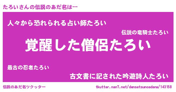 | ヒーロー風カッコイイあだ名 | 『究極戦士タロイ』『暗黒騎士タロ』 |